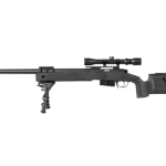 La réplica del rifle de francotirador Specna Arms cuenta con un mecanismo de cerrojo sencillo y fiable , lo que significa que es necesario recargarla antes de disparar. Está fabricada en metal y polímero reforzado. Las piezas metálicas incluyen el cañón externo, la recámara, el gatillo y la palanca de carga, así como los rieles para accesorios RIS y todos los elementos de montaje, como los tornillos. El chasis, la culata, la almohadilla de la culata y el cargador están fabricados en polímero sólido. La almohadilla de la culata cuenta con una cómoda almohadilla de goma, cuyo grosor se puede ajustar mediante un juego de superposiciones intercambiables. En combinación con la almohadilla ajustable para la mejilla, permite ajustar la culata a las preferencias del usuario.
