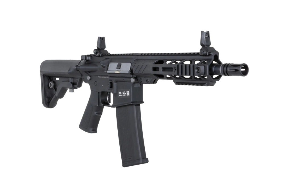 El cañón es un diseño propio de Specna Arms que combina cualidades estéticas con una gran ergonomía. Cada elemento ha sido fabricado y ajustado con atención al detalle. El modelo cuenta con manipuladores ampliados a ambos lados (selector y liberador de cargador) y un cerrojo funcional.